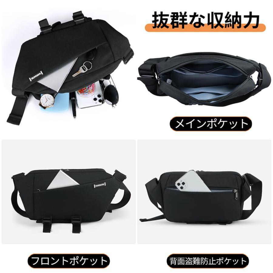 登録情報取り扱い案内 水拭き 【高品質素材】ボディバッグは高品質なオックスフォード素材を採用し、撥水性が抜群です、中に水が浸み込まないので 突然の雨でも安心!傷にも強い生地なので耐摩耗性も高く、長い間を使いいただけます。また軽くて滑りやすいYKKファスナーを採用し、開閉時のストレスがなくとても快適です。【優れた収納力】サイズ:25cm×17cm×8.5cm、重量:?0.4kg。外側5つ(フロントポケット*1、メインポケット*1、背面盗難防止ポケット*1、隠しポケット*1、底部ポケット*1)、内側4つ(オープンポケット*3、ファスナーポケット*1)合計9つのポケットがあって、スマホ、ipad、財布、鍵、折り畳み傘、ペットボトル、財布等普段持ち歩く荷物が楽に収納できます。【多機能バッグ】軽くて持ちやすい小型ボディバッグです。男女問わずお使いいただけます。ボディバッグ、ショルダーバッグ、ウエストバッグなどとして持ち運びできます。シンプルで合わせやすいデザインで、様々な服装に適しています。【優れた実用性】①ショルダーベルトの長さは調節することが出来るのでその日の自分に合わして調節出来ます。②隠しポケットと底部ポケットは折り畳み傘やペットボトルを収納できます。また底部には長さを調節できる2本のテープが付いています。③バッグの背面に荷物ベルトが付いて、スーツケースに固定できます。長期旅行、海外出張などの長時間背負時に肩の負担を減します。【適用シーン】軽量の日常的な旅行やスポーツに最適なボディバッグです。ショッピング、アウトドア、スポーツ、ゴルフ、ウォーキング、サイクリング、旅行、釣り、登山などあらゆるシーンで活躍いたします。