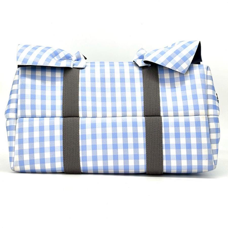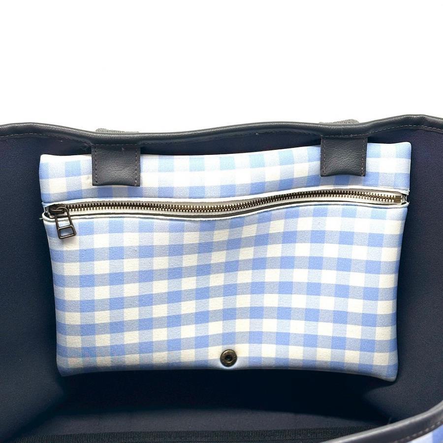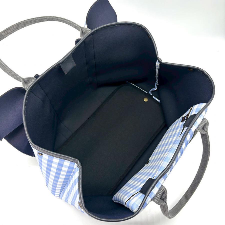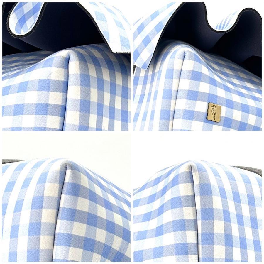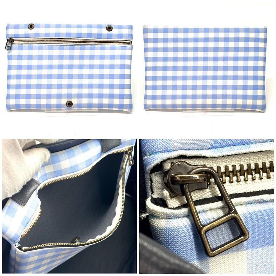 【商品説明】・きれいめにもカジュアルにも振れる、視線を惹くギンガムチェックのトートバッグ。フリルの立体感が装いに表情を添え、A4収納可能で通勤やお出かけにも活躍します。取り外し可能なポーチ付きで、いま季節感のあるブルートーンや春夏の軽やかなムードとも相性の良い一点です。