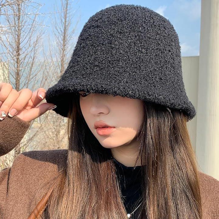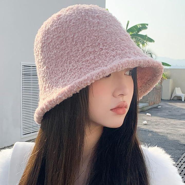 ふわっと暖かいシンプルなバケットハット。。どんな服装にも合わせやすく、とてもシンプルなデザイン