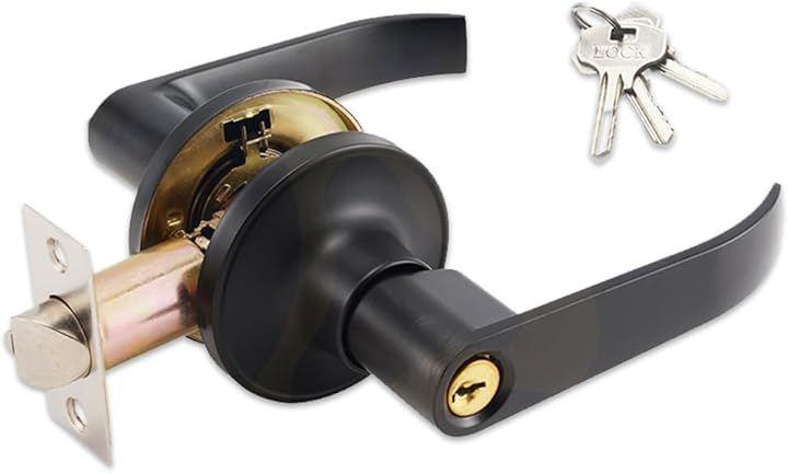 「シンプルなレバータイプのドアノブ」鍵付きレバーハンドル型ドアノブです。