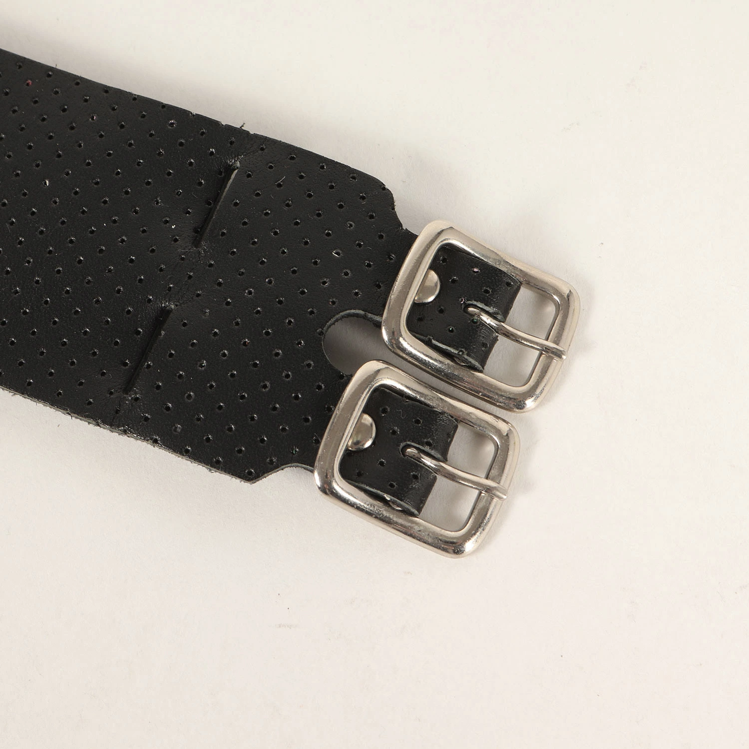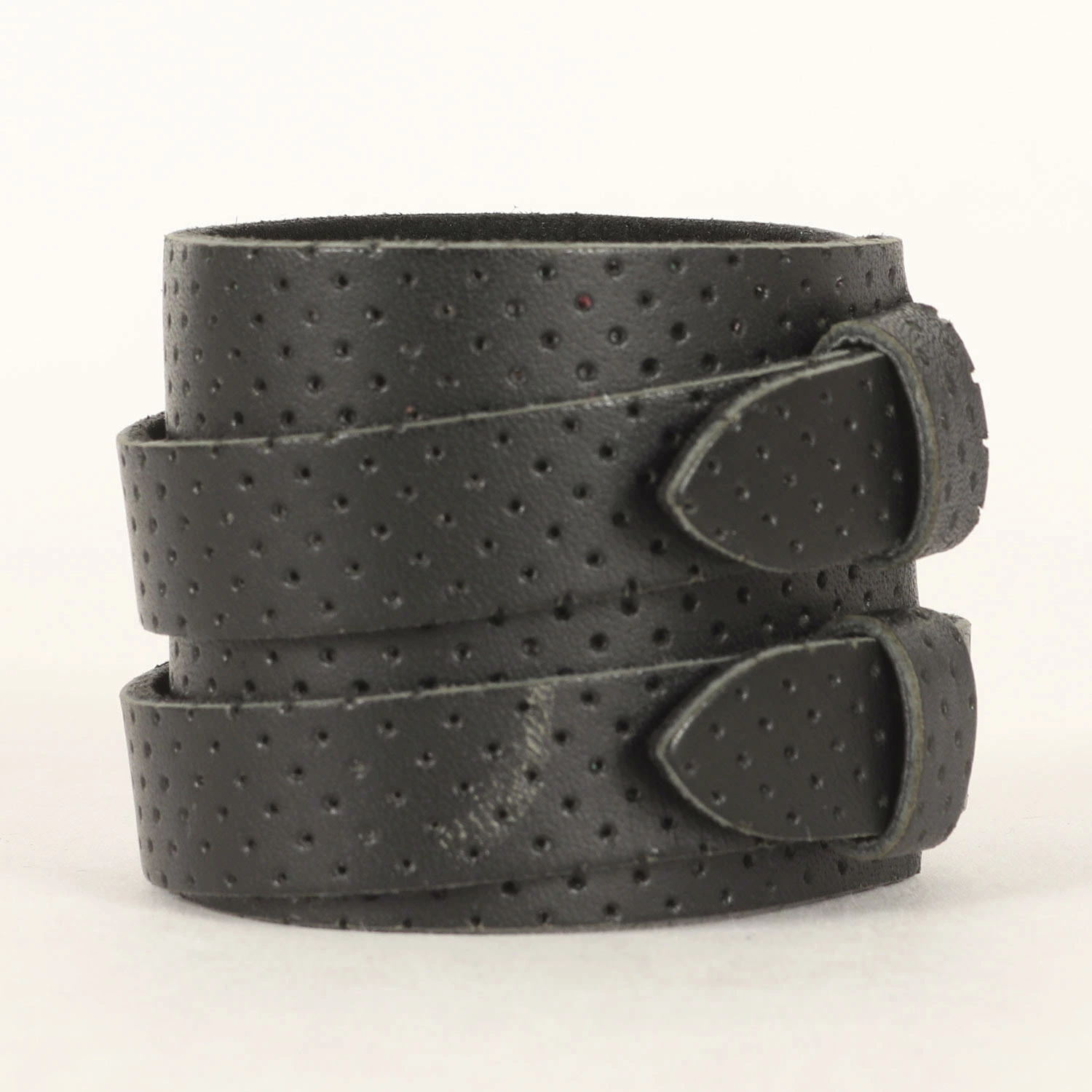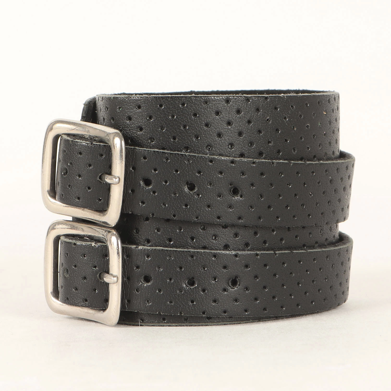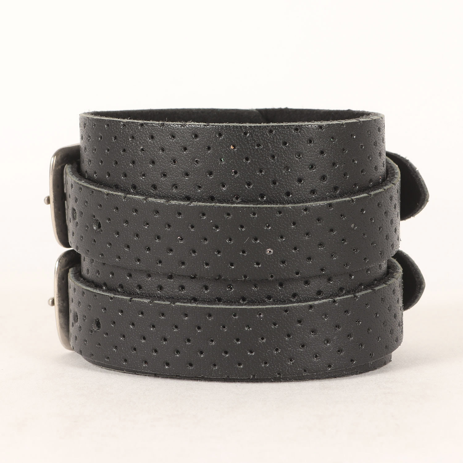 | 商品説明 | パンチングレザーで仕上げた2連ベルトのブレスレットになります。 |