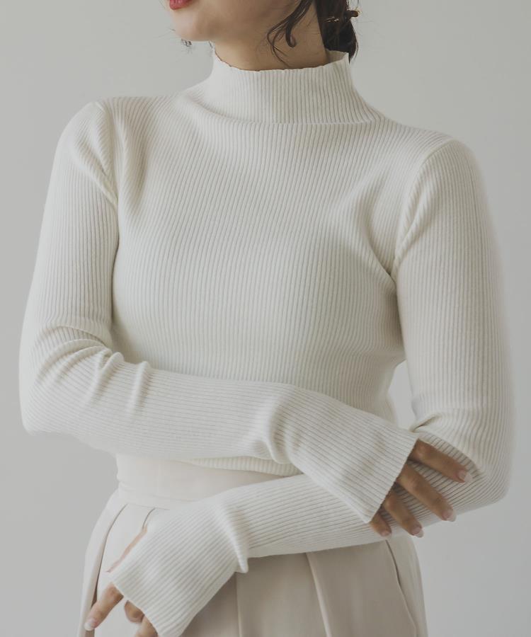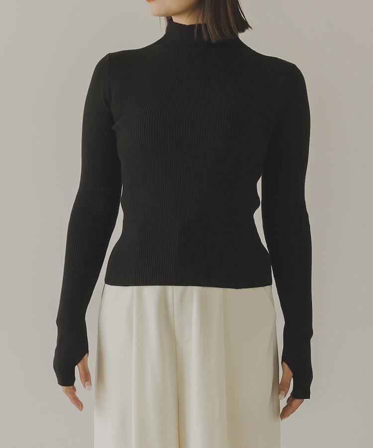 ベーシックデザインにアームウォーマーの要素を取り入れた今年らしいリブニットトップス。