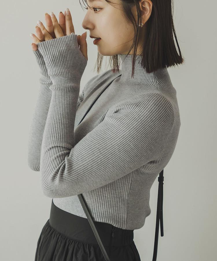 ベーシックデザインにアームウォーマーの要素を取り入れた今年らしいリブニットトップス。