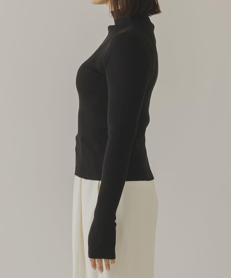 リブの縦ラインが強調され、自然な着やせ効果も◎