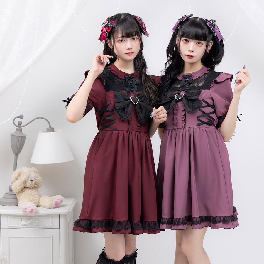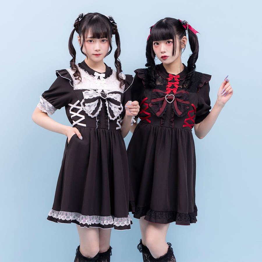 レースフリルとリボンたっぷりの地雷系レースアップワンピース