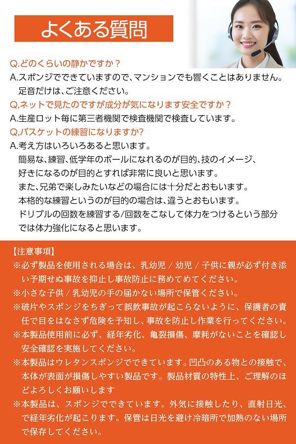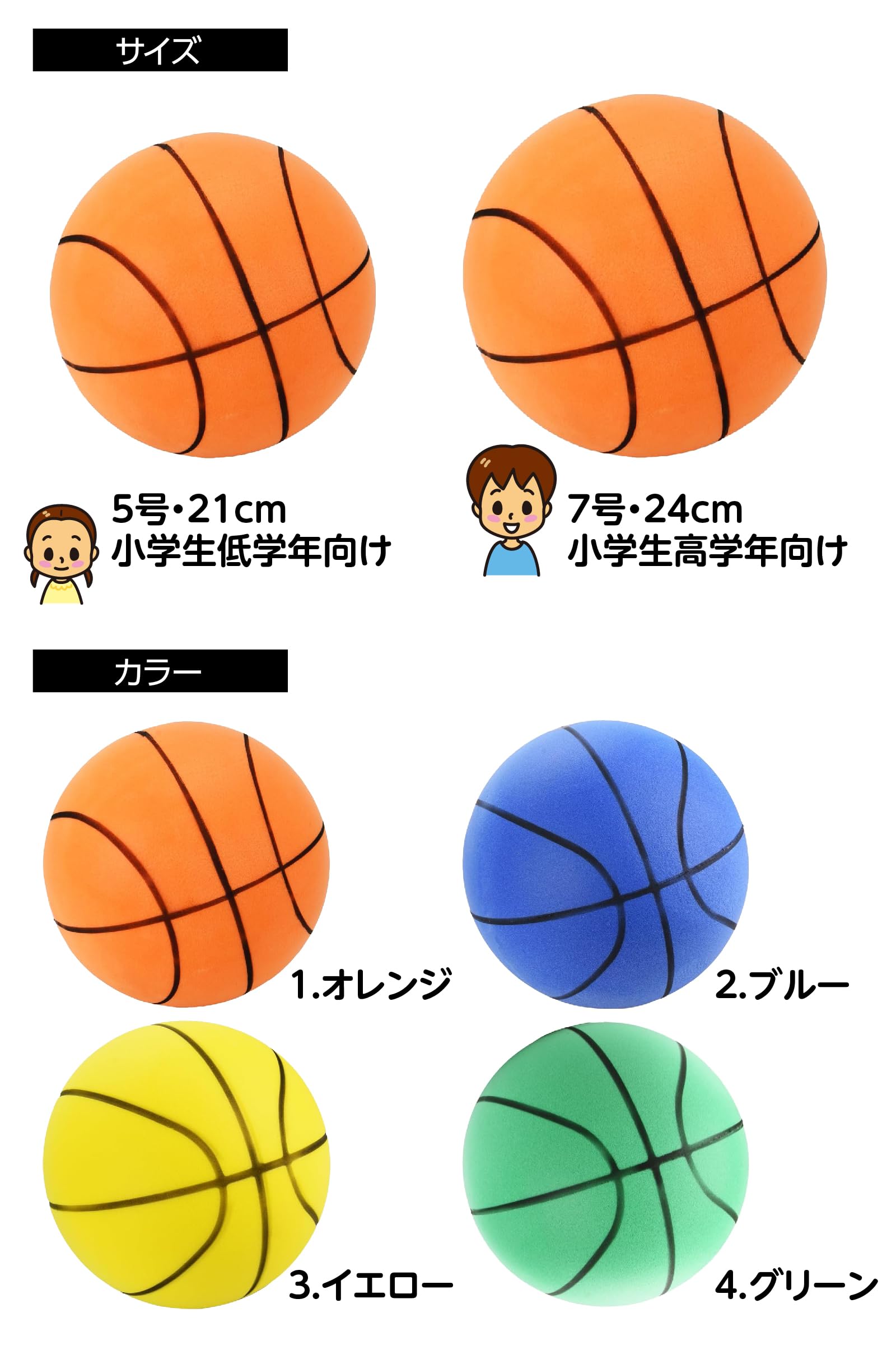 【家の中でも楽しめる】自宅でバスケットの練習が出来るポリウレタン製ボールです。固体フォームボール/スキンコーティングなし/強い圧力に耐えてすばやく跳ね返ることができ、耐衝撃性/触覚の表面は握りやすく/跳ね返りやすいですが、高すぎません。 【ポリウレタン製フォーム】環境に優しいポリウレタンワンピース射出成形、100%フォーム、一貫した真円度、密度、および跳ね返りの高さ。 【バウンドしてもうるさくない】入ってくる音を吸収する無数の小さな穴、音は内部の左右の衝突で徐々に消費され、吸音の役割を果たします。空気を入れる必要がなく、破裂の危険もありません。 【ボール本体仕様】 [サイズ]7号球 直径24cm [重量](1個あたり)240g [素材]高反発ウレタンフォーム [カラーネーム]1.オレンジ 2.ブルー 3.イエロー 4.グリーン 【ゴール仕様】 [品名]サイレントバスケットゴール 3号~7号まで対応 [サイズ]バスケットボールリング: 直径30cm(7号まで対応) [重量](1個あたり)380g [素材]ABS素材 [耐荷重]4kg [取り付け] 粘着式(繰り返し使用可能) 【商品に関する注意事項】製造過程で起こる気泡による表面の小さな穴や成型時に発生する表面に硬い点ができる場合があります。この場合の返品・交換は対象外となります。 【使用時の注意事項】 ・競技用ボールではございません。 ・仕様の重量は保証されるものではなく、あくまで平均使用の目安になります。使用状況や劣化など使用前には必ず損傷などがないか安全目視確認を安全確認を実施してください。 ・対象年齢は6歳以上の商品になります。保護者の方は6歳未満の子供が使わないようにしてください。 ・小さな子供が一人で遊び事故が起こらないように大人が管理してください。 ・商品のデザイン、仕様、外観、色合いにつきましては予告なく変更される場合がございます。またお客様のモニターなどの環境により商品の写真等の色は実物とは多少異な場合がありますので予めご了承下さい。