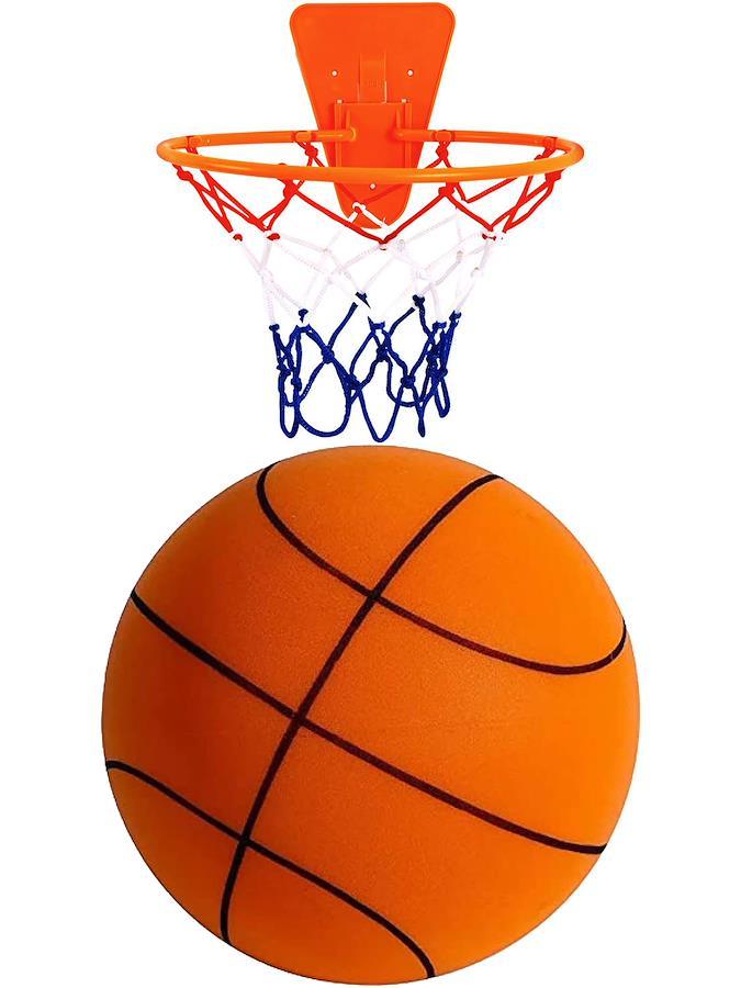 Rikopin Silent Basketball with Goal, Silent Ball, Size 7, Urethane Foam Basketball, Sponge, Indoor Use