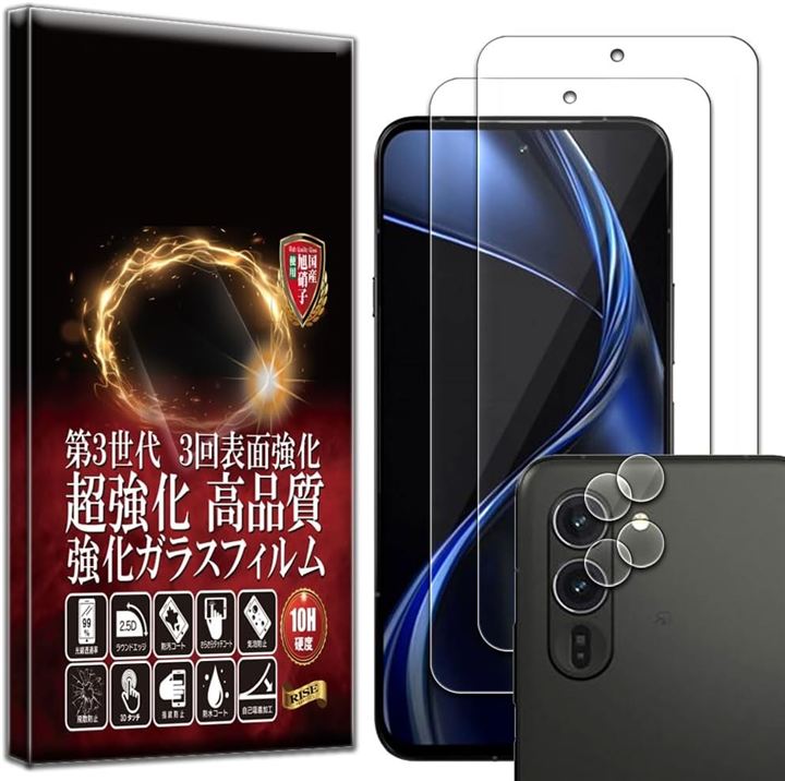 クリアガラスフィルム2枚+クリアカメラレンズ保護ガラスフィルム2枚セット