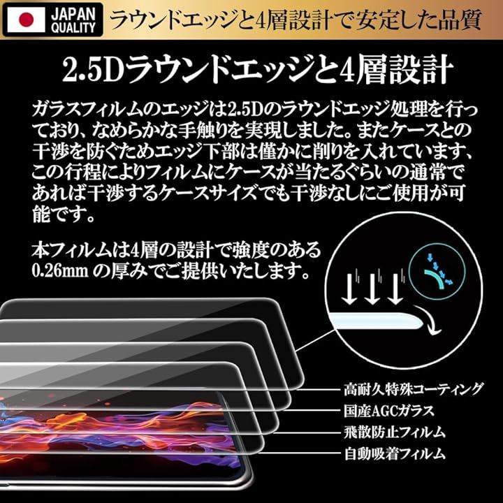 *内容品:クリアガラスフィルムx2、カメラレンズ保護ガラスフィルムx2、ウェットクロスx2、ドライクロスx2、埃吸着シートx2、クリーニングクロスx1、パッケージ裏面貼付説明書付属。