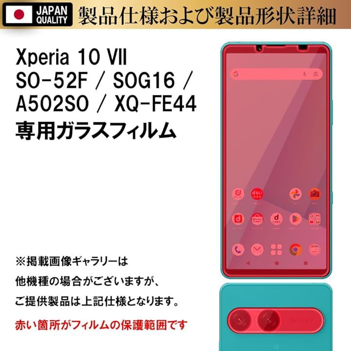 対応機種及び仕様Xperia 10 VII SO-52F / SOG16 / A502SO / XQ-FE44 エクスペリア10 7 クリアガラスフィルム2枚+クリアカメラレンズ保護ガラスフィルム2枚セット。