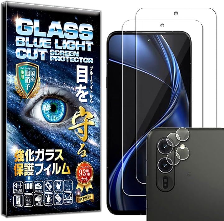 ブルーライトカットガラスフィルム2枚+クリアカメラレンズ保護ガラスフィルム2枚セット