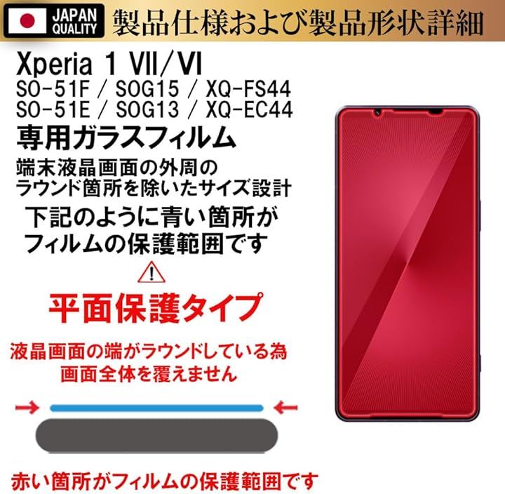 「対応機種及び仕様」Xperia 1 VII / VI SO-51F / SOG15 / XQ-FS44 / SO-51E / SOG13 / XQ-EC44 エクスペリア 7 / 6 クリアガラスフィルム2枚+クリアカメラレンズ保護ガラスフィルム2枚セット。