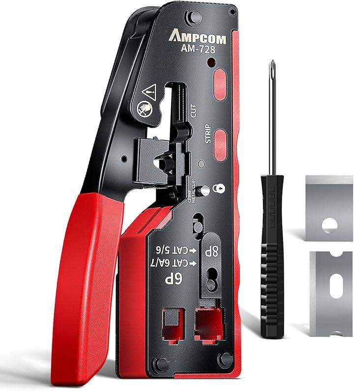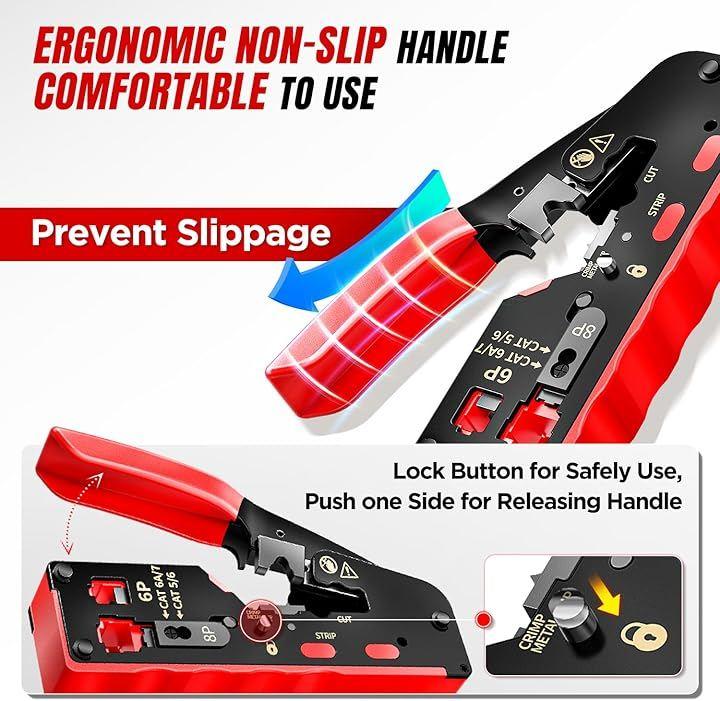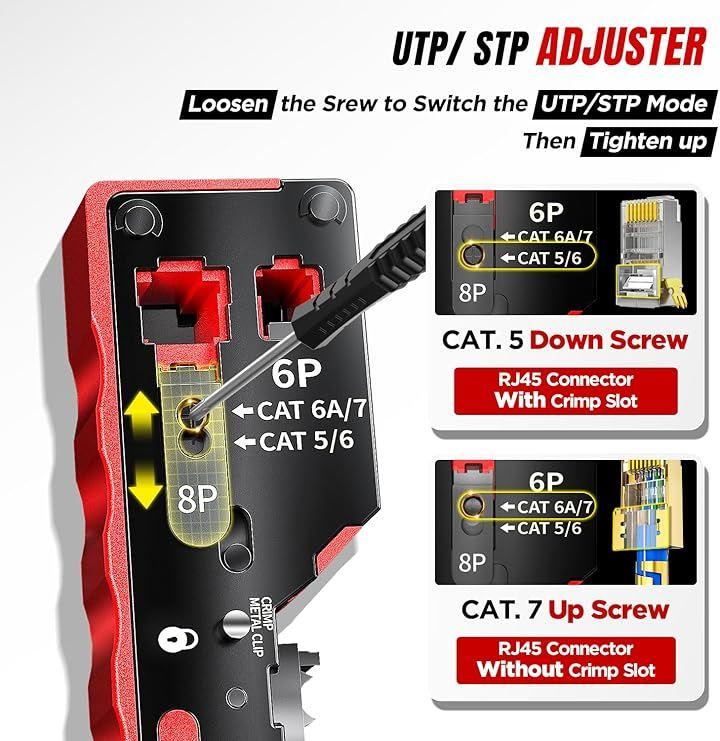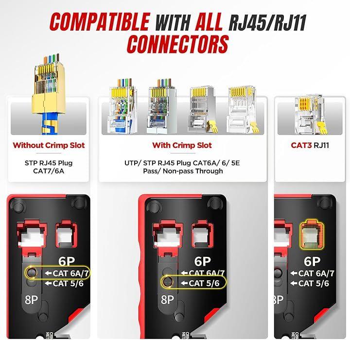 幅広い互換性:パススルーCAT5/CAT5E/CAT6/CAT7 RJ45プラグ8P8CとRJ12 6P6C RJ11 6P4Cコネクタに適しており、さまざまなネットワーク配線規格に対応する汎用性を確保します。
