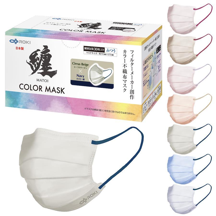 オリジナル仕様のフィルターと、マスクの隙間を極力抑える独自デザイン構造により、高い感染防止対策を実現。マスク装着時の不快感(耳の痛みやメガネの曇りなど)を極力軽減する仕様。国内自社生産により、生活環境から医療現場まで安心してご使用頂ける性能と品質を追究。従来の高性能マスク『纏(まとい)』から通気性が36%大幅アップした超快適マスク『纏Air』が登場!着け心地が良いため長時間つけても気にならない。暑い時期にオススメのマスクです。