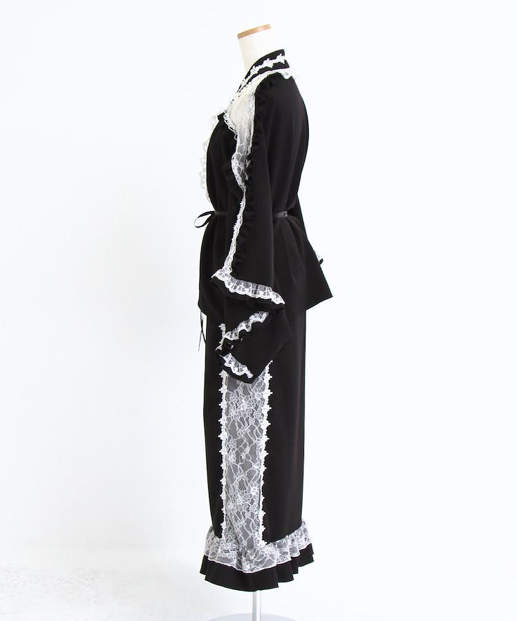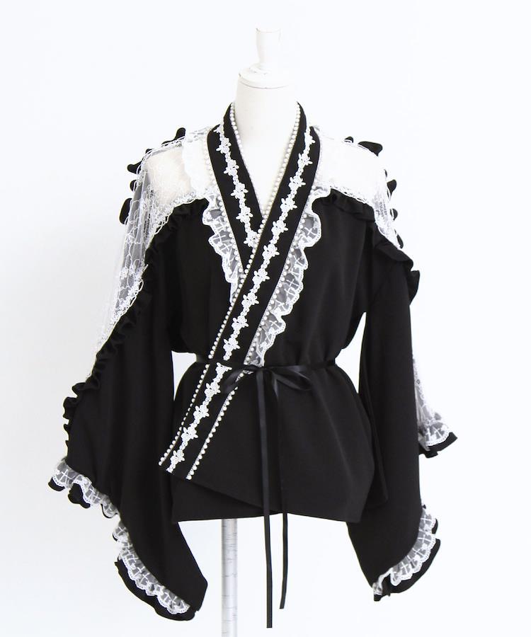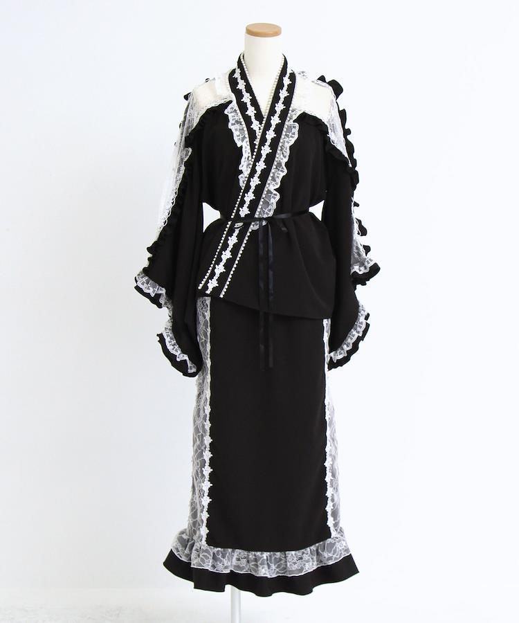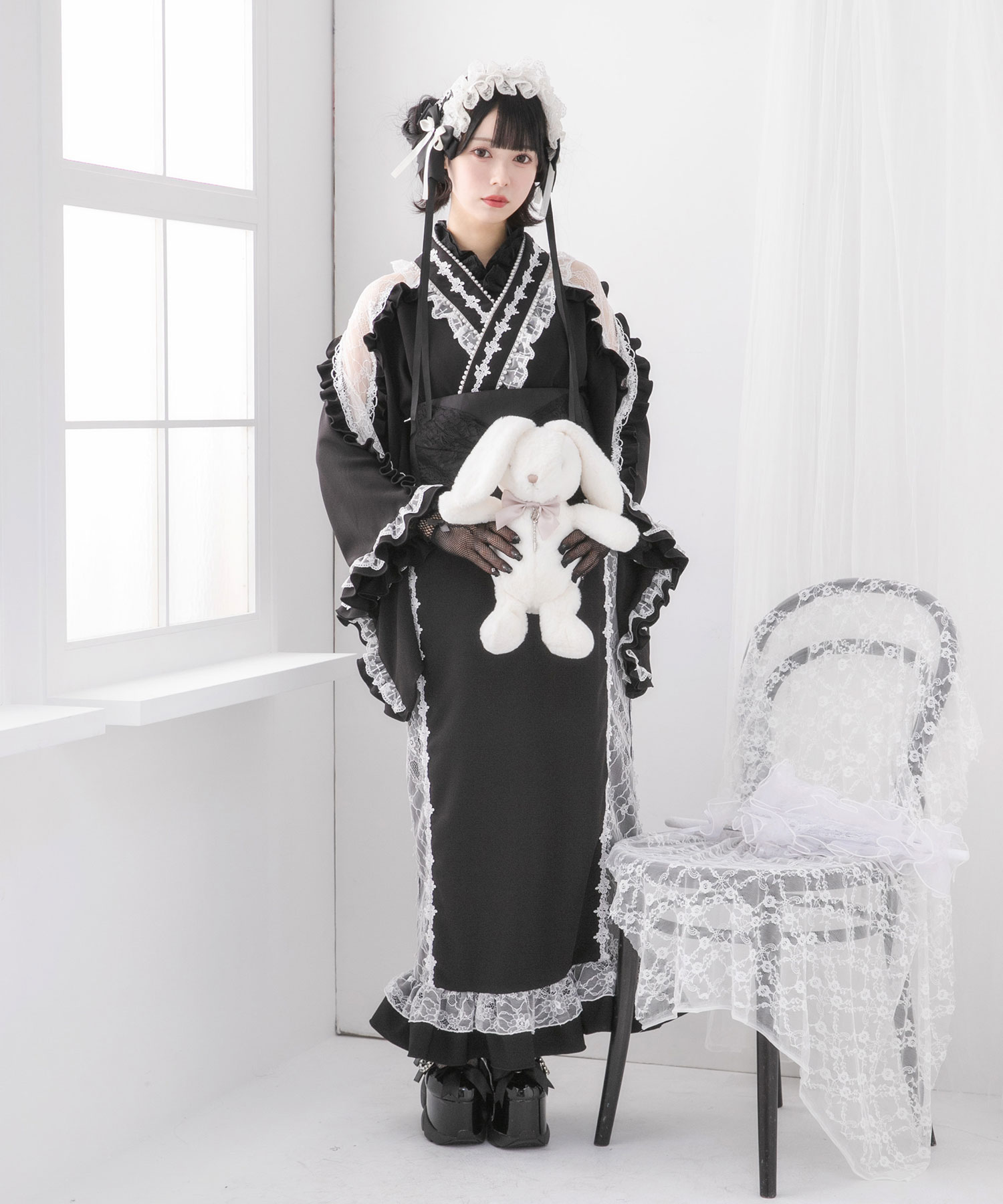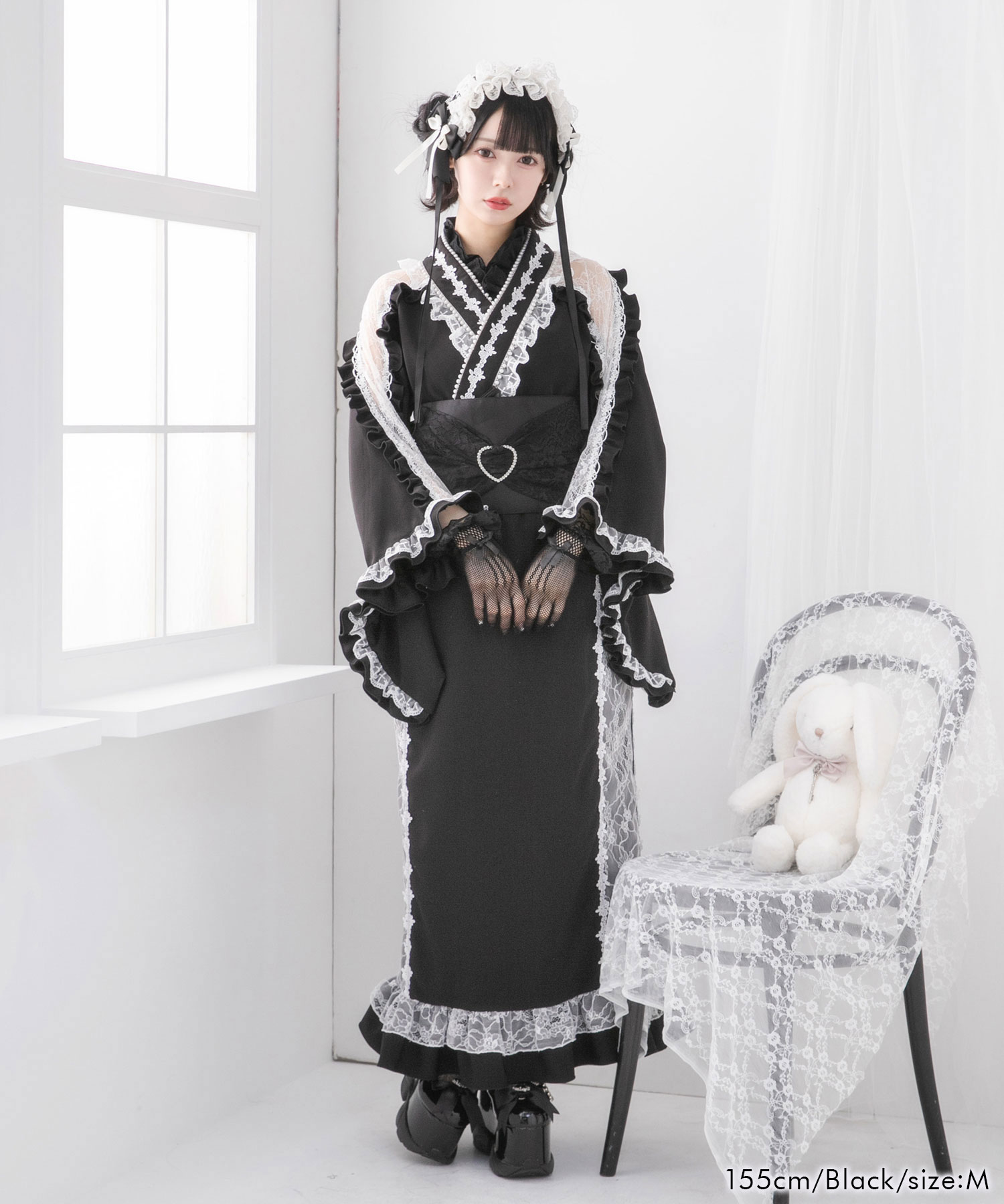 繊細なレースとフリルが重なり合い、ロマンティックに仕上げたDearMyLoveの新作浴衣が登場♪バラモチーフのレース、パール、そして十字架柄をあしらった特別な一着で、クラシカル×ゴシックな雰囲気を演出します。肩から袖にかけては大胆に透け感のあるレースを使用し、可愛さの中に少し大人っぽさをプラス。フリルやリボンディテールが360度どこから見ても華やかで、写真映えもばっちりです!スカート部分にもたっぷりのレースとフリルを施し、歩くたびにふわりと揺れるシルエットが魅力的。≪おすすめポイント≫・バラ×パール×十字架モチーフで他と差がつく特別感・肩開き&レースで抜け感をプラス・上下セパレートタイプで着付けが簡単◎・裾までたっぷりフリルでお人形のような印象に推し活、イベント、撮影会はもちろん、おうち撮影にもおすすめです。《透け感》なし 《生地の厚さ》普通《生産国》中国
