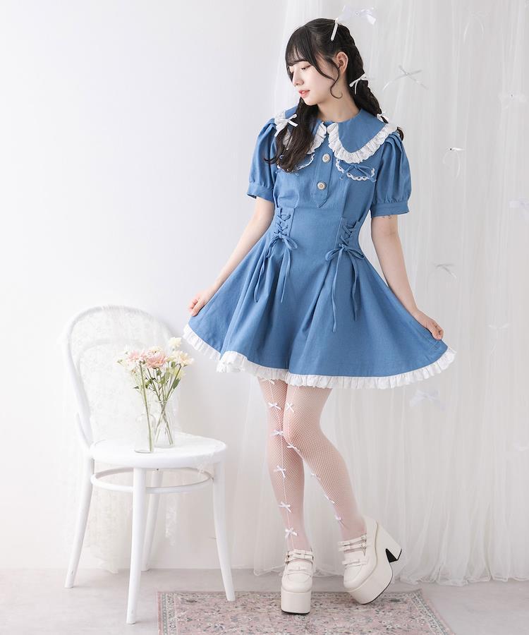 レースタイツなどのレース系小物や白ソックスと相性がよく、とことんガーリーがお好みの方におすすめの合わせ方です。