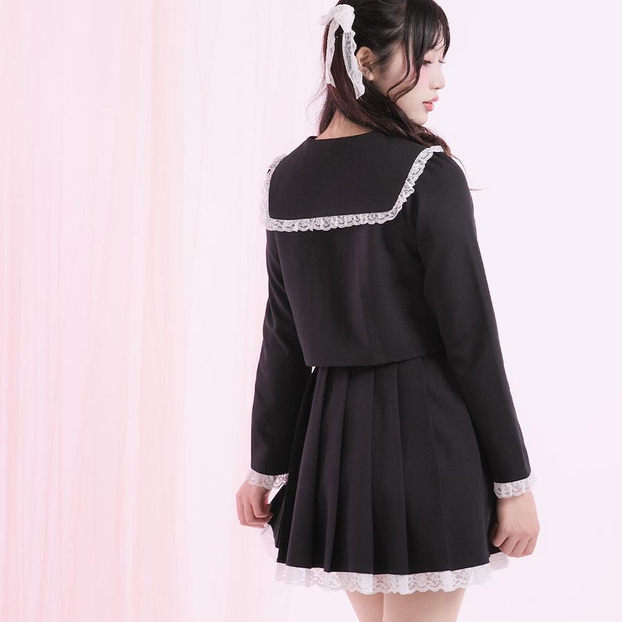 襟や袖口、胸ポケット、スカ―ト裾等レースをふんだんに使用しており、写真映え間違いなしのデザインに♪