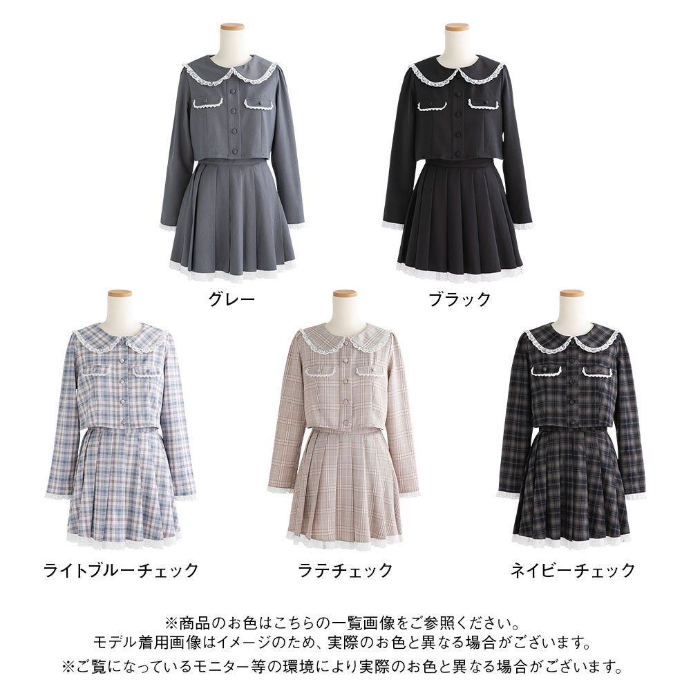 襟や袖口、胸ポケット、スカ―ト裾等レースをふんだんに使用しており、写真映え間違いなしのデザインに♪