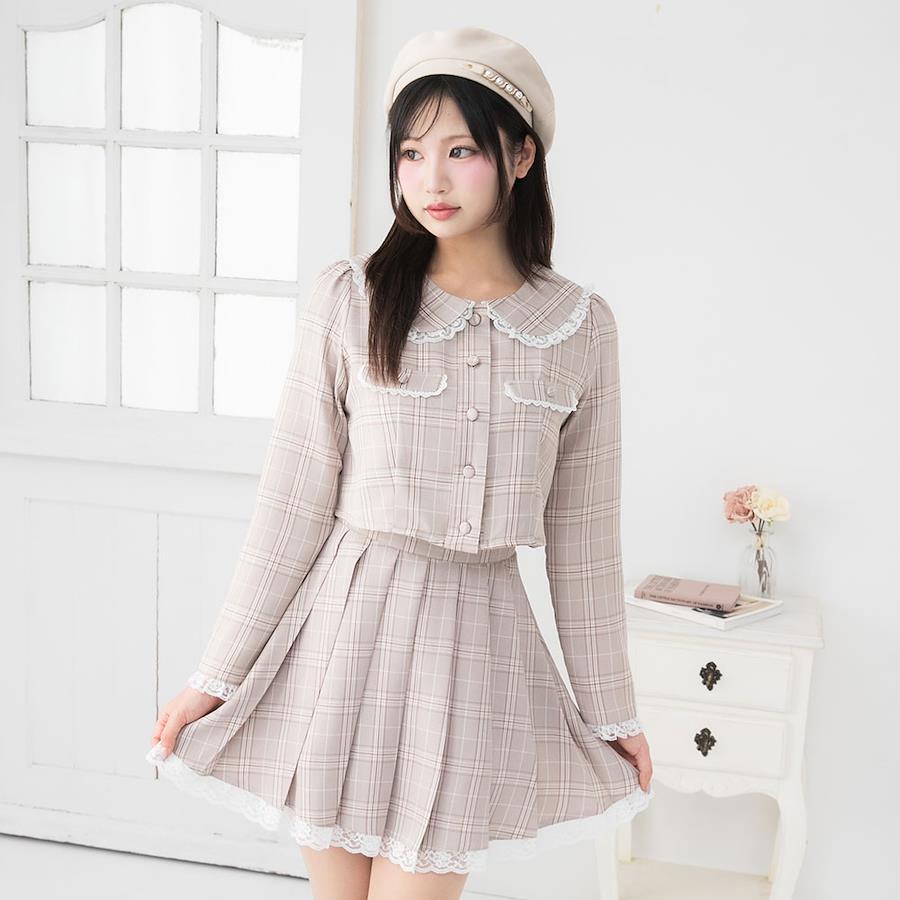 襟や袖口、胸ポケット、スカ―ト裾等レースをふんだんに使用しており、写真映え間違いなしのデザインに♪