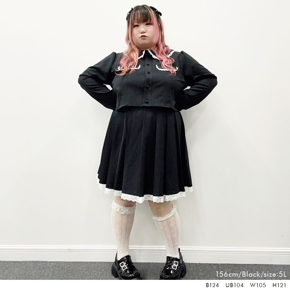 襟や袖口、胸ポケット、スカ―ト裾等レースをふんだんに使用しており、写真映え間違いなしのデザインに♪
