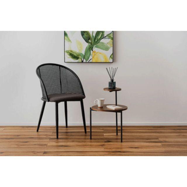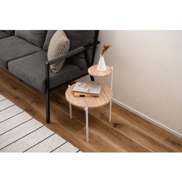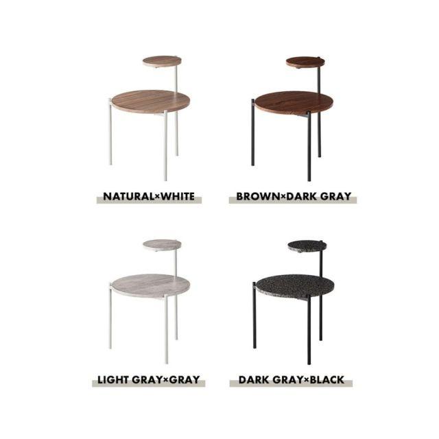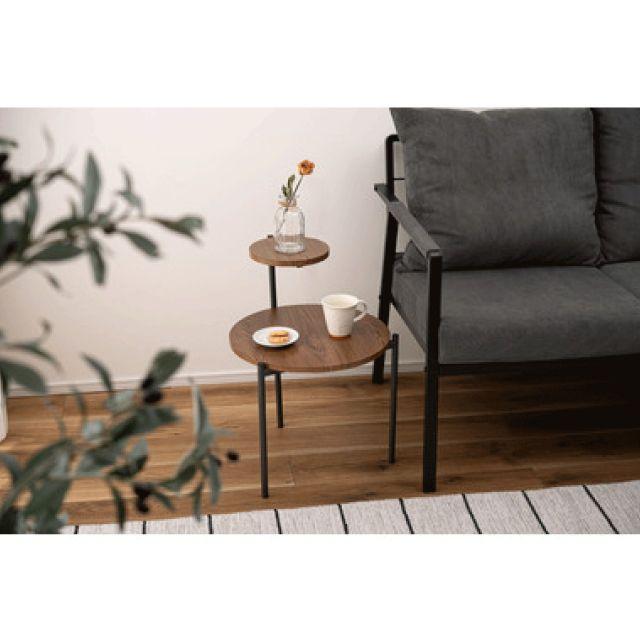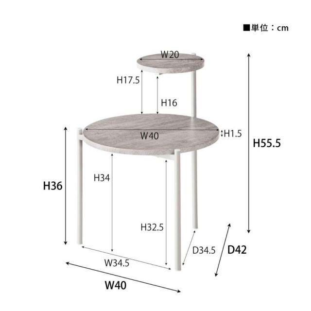 大小の円形天板がモダンでおしゃれなサイドテーブル!●アクセントになる特徴的なデザイン。●段形状の天板が特徴的なサイドテーブル。●木目調や石目調の天板とシャープなスチール脚を組み合わせ、モダンな印象に仕上げました。●ソファサイドやベッドサイドはもちろん、ディスプレイ用としても活躍。●様々なスタイルに調和し空間のアクセントになるアイテム。●2つの円形天板が重なり合い空間にモダンで上品な印象をプラス。●汚れてもサッと拭き取れる素材なのでお手入れも楽々。●脚先にはキャップが付いているため床へのダメージを軽減。〈製品規格〉商品サイズ:W40×D42×H36/55.5cm重量:約2.5kg静的耐荷重】5kg材質:スチール(粉体塗装)合成樹脂化粧繊維板組立:組立式生産国:中国