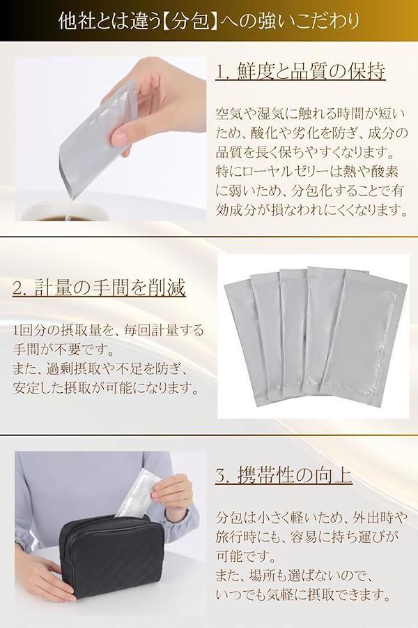 特にローヤルゼリーは熱や酸素に弱いため、分包化することで成分が損なわれにくくなります。