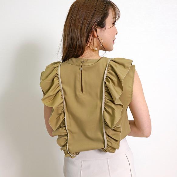 フリルを施し、ペプラムになりすぎないペプラムシルエットデザインです。
