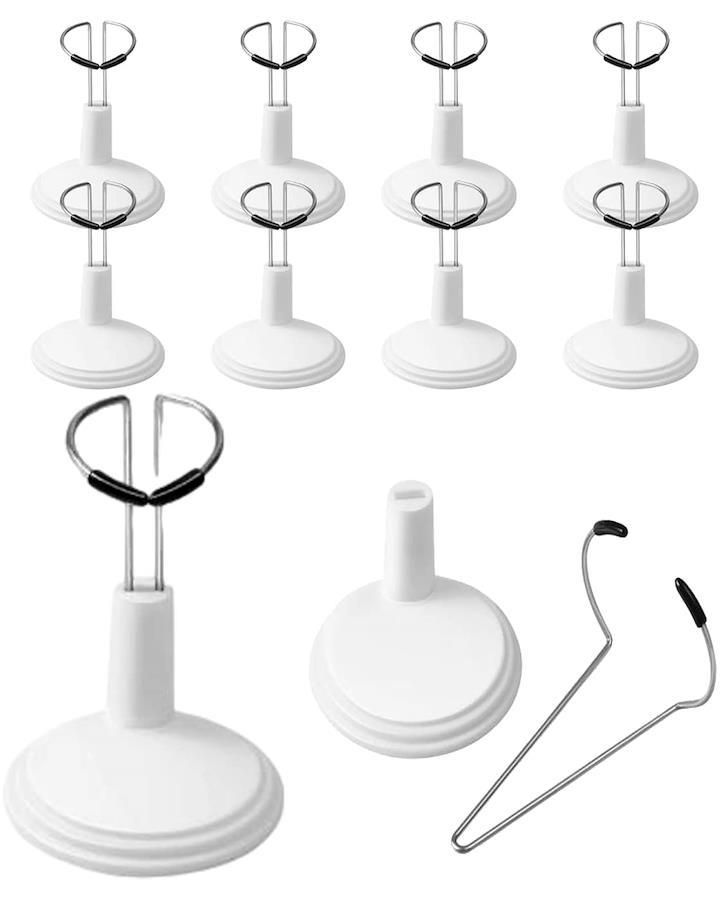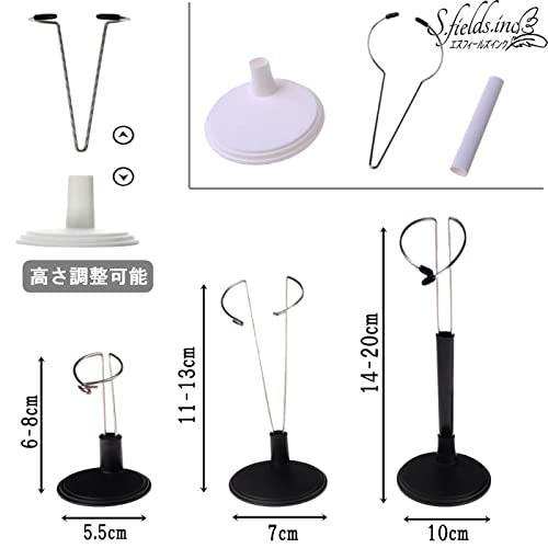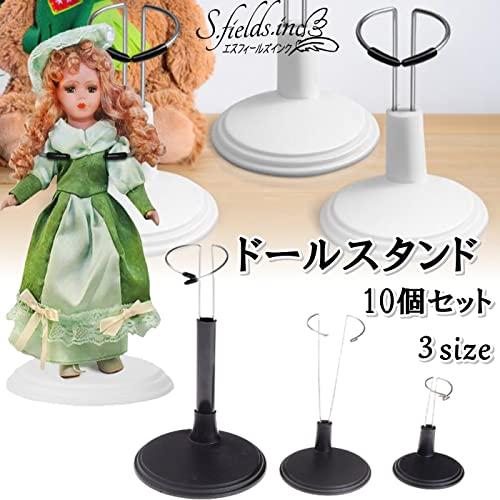フィギュアや人形用展示スタンド10個セットです。ブラック・ホワイトの2カラー、15cm用・20cm用・25cm用の3サイズからお選びいただけます。 それぞれ2~7cmの高さ調整が可能なので、人形やアクションフィギュア、ぬいぐるみなど様々なタイプにお使いいただけます。 台座にステンレスのアームを差し込むだけで簡単に組み立てができ、人形をしっかりホールド。細いステンレスアームなので、装着時も目立ちにくくなっております。 【適応サイズ】1/6・1/9・1/12サイズドール プライスシリーズ、リカちゃん人形シリーズ、8インチ・12インチアクションフィギュア等 【本体サイズ】15cm用:台座5.5cm 高さ6-8cm 20cm用:台座7cm 高さ11-13cm 25cm用:台座10cm 高さ14-20cm 【カラー】ブラック・ホワイト