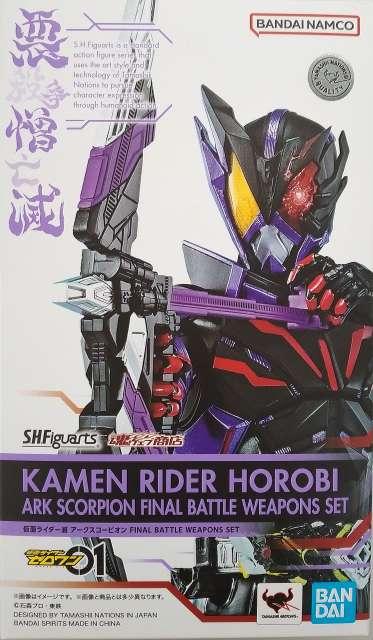『仮面ライダーゼロワン』より、「滅」が「絶滅ドライバー」と「アークスコーピオンプログライズキー」を用いて変身した姿、「仮面ライダー滅 アークスコーピオン」が登場!「アタッシュアロー」、「アタッシュカリバー」、「サウザンドジャッカー」、「プログライズホッパーブレード」が付属し、劇中のクライマックスを再現できる!
