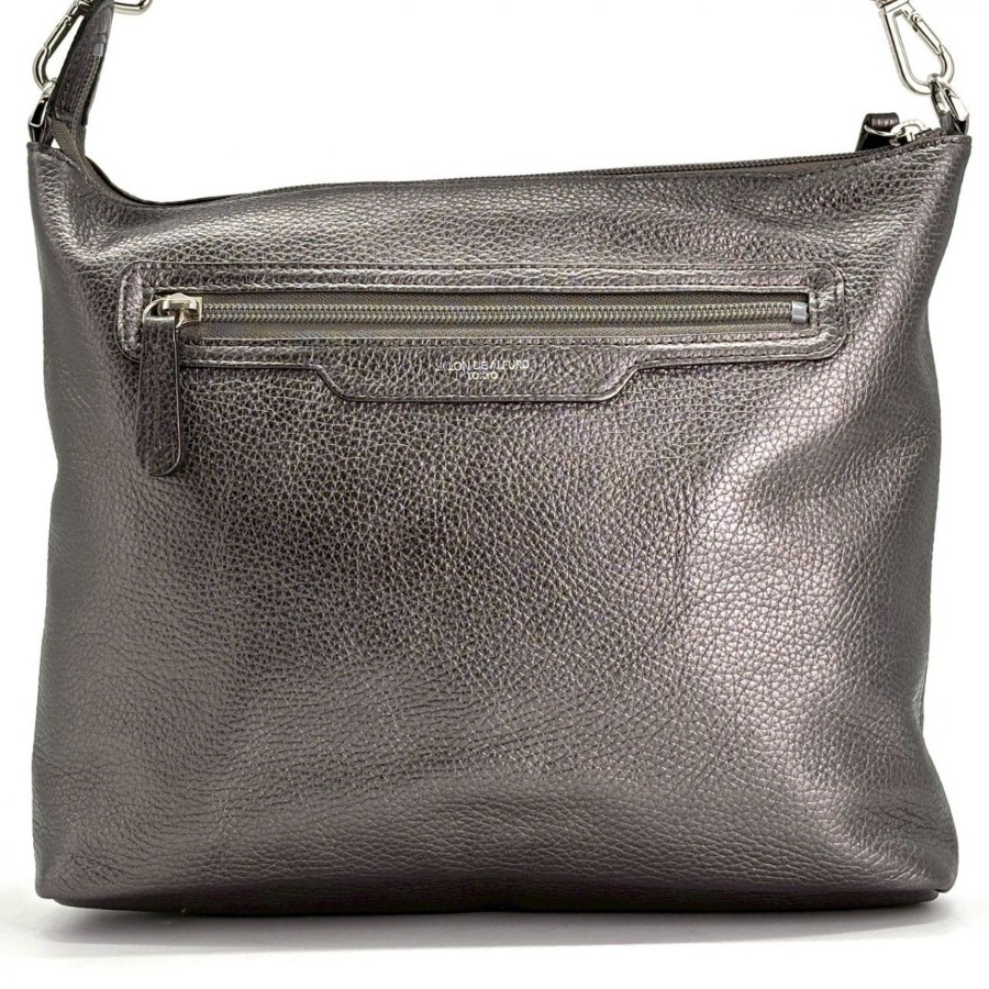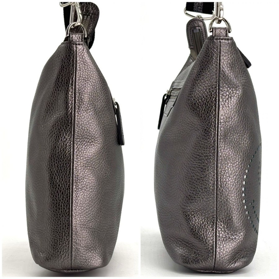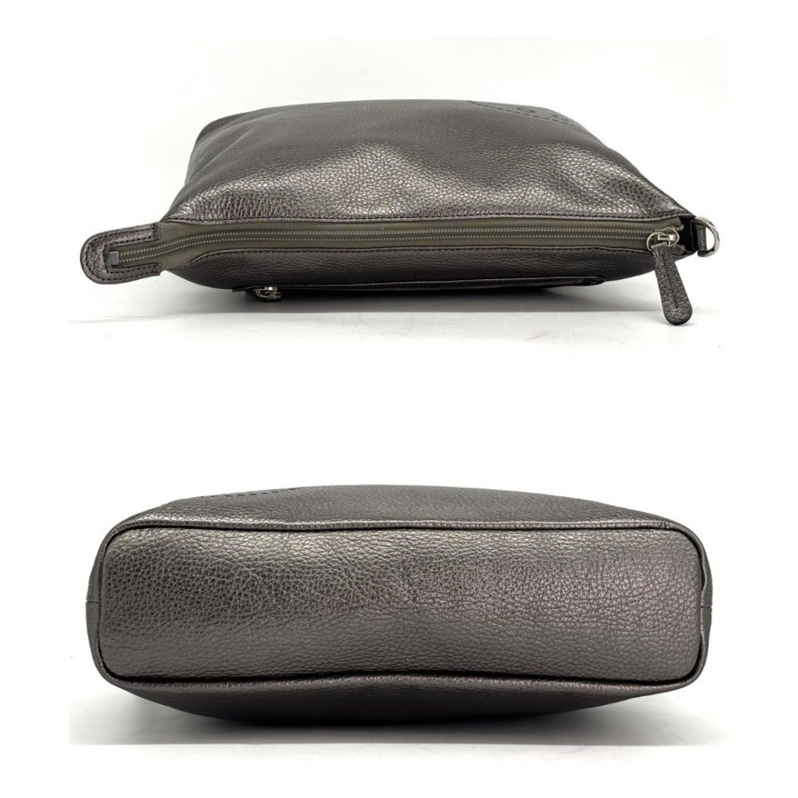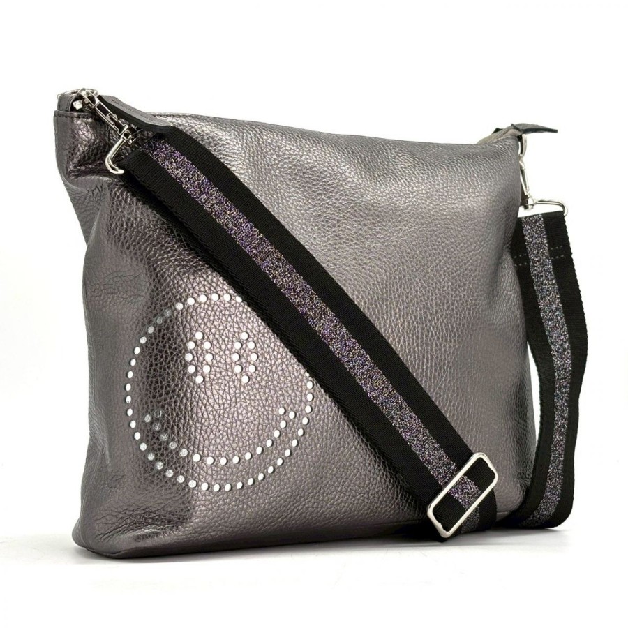 【商品説明】・ガンメタリックの奥行きある光沢に、さりげないスマイルモチーフが映える一品。軽やかなホリゾンタルフォルムで身体に沿い、デイリーからカフェ時間までスマートに馴染みます。Y2Kやミニマルスタイルとも相性が良く、装いに遊び心を添えるショルダーバッグです。