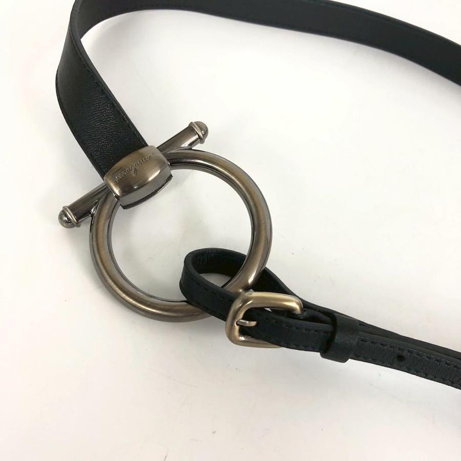 Salvatore Ferragamo Gancini 黑色皮革腰帶