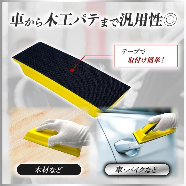 湾曲可能タイプ(フレキシブルパテ)のサンディングブロックは、面ファスナー式のサンドペーパーに適合しています。