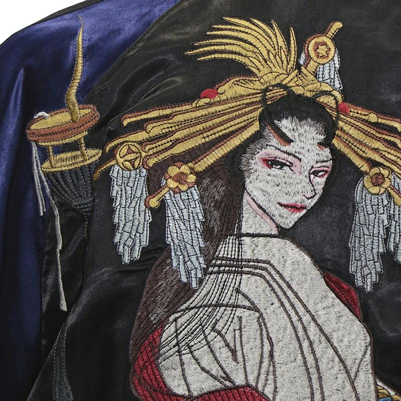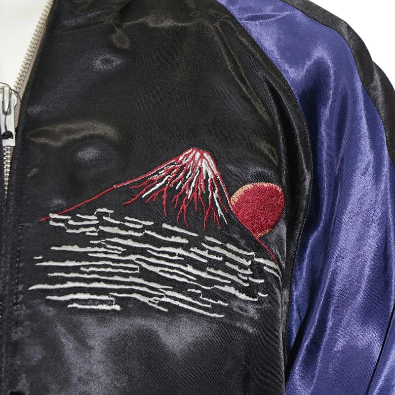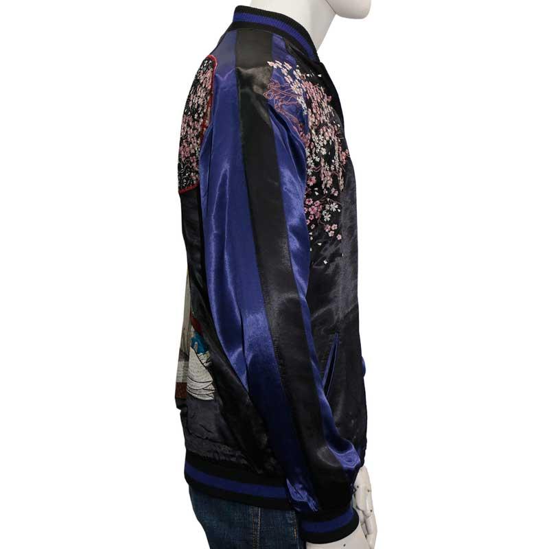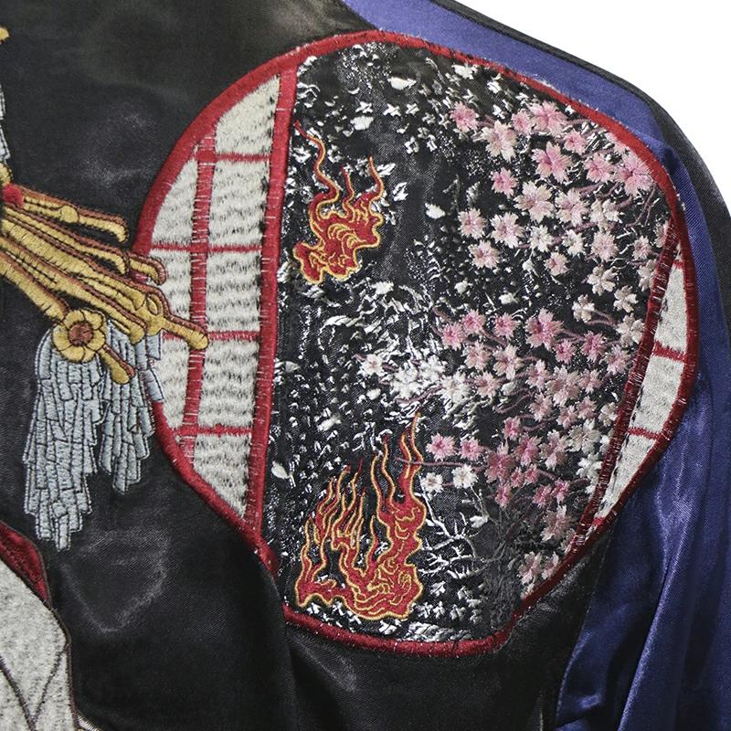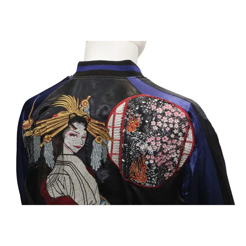 【デザイン】和柄スカジャンブランド「satori」から和柄スカジャンの登場です。花魁 柄 和柄 スカジャンです。切れ長の目筋が麗しい花魁の着物姿を精密なで表現しています。着物の柄の精密なももちろんのこと、窓の中のジャガード生地を使用する細やかなこだわりにも注目です。なお、リバーシブル使用になっており、裏面はシンプルな無地になっています。裏表で2通り楽しむ事ができます。レーヨンを100%なので、絶妙な光沢感、そして滑らかな着心地は申し分ありません。なお、レーヨンの性質上と加工による糸切れや糸とび、染め傷等が発生致します。それもレーヨンスカジャンの味としてご理解下さい。