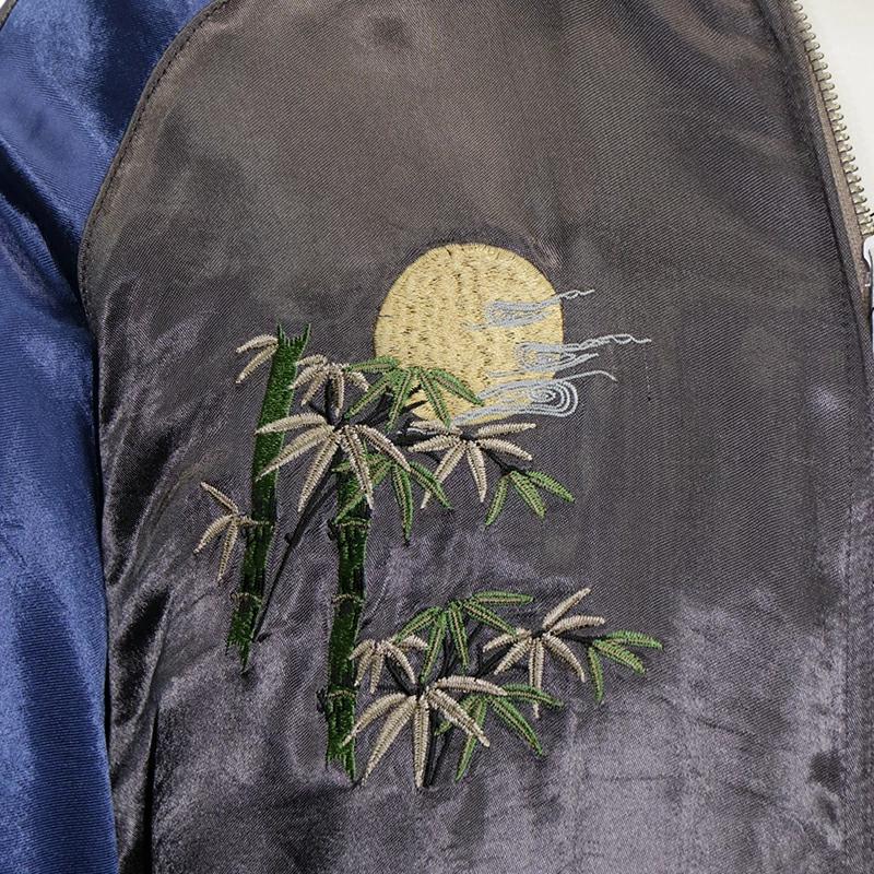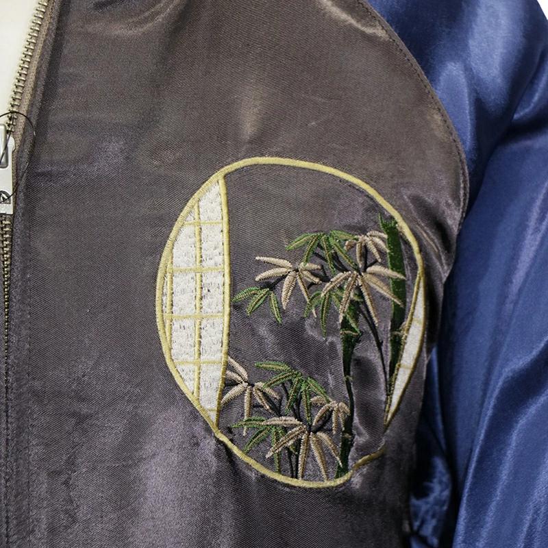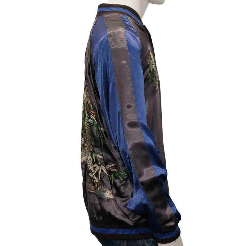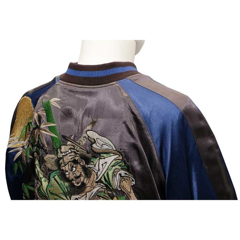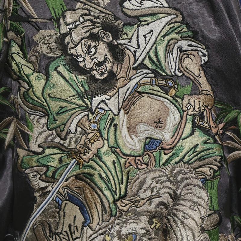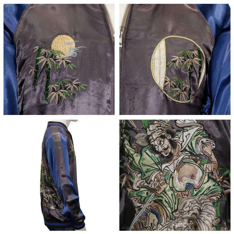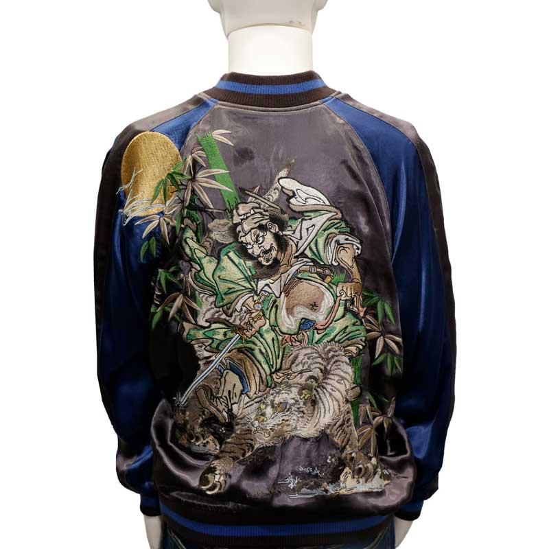 このスカジャンの鍾馗は虎に跨り、鍾馗と虎の二つの目が合わさり4つの目で悪いものを睨み付けます。