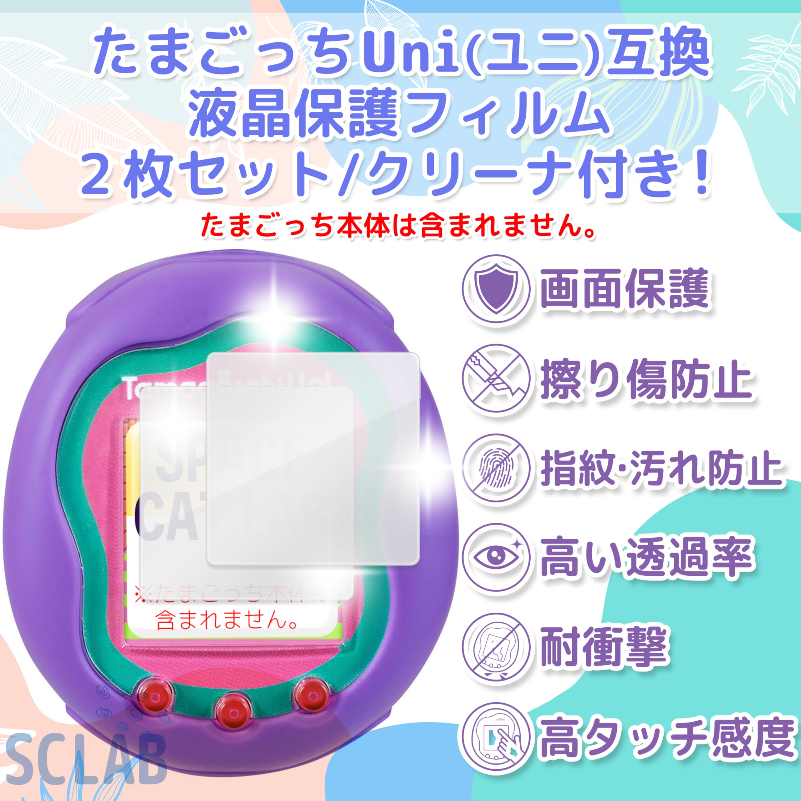 たまごっちUni対応 液晶画面保護フィルム2枚セットです。 専用液晶画面クリーナ2セット入り。 画面保護/擦り傷防止/指紋・汚れ防止/高い透過率/耐衝撃/高タッチ感度