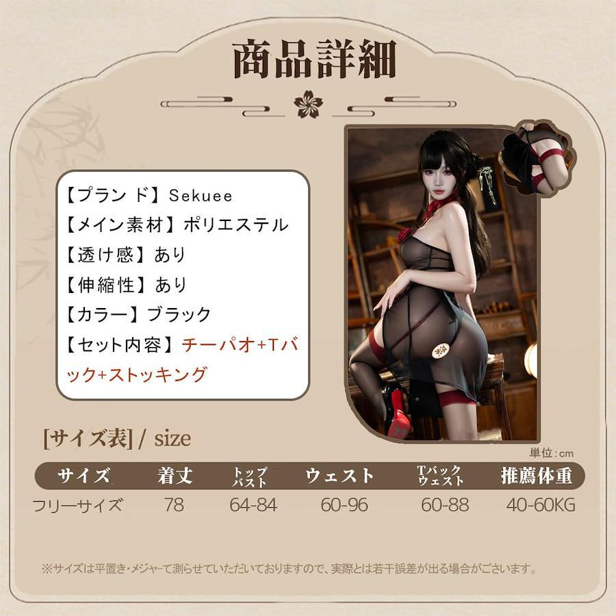 梱包サイズ?:?28x20x3cm;300gでの取り扱い開始日?:?2025/7/5メーカー?:?SekueeASIN?:?B0FGTPG6W8部門?:?レディース売れ筋ランキング:ドラッグストア-175,670位(ドラッグストアの売れ筋ランキングを見る)アダルト用コスチューム-2,056位カスタマーレビュー:4.05つ星のうち4.02個の評価vardpAcrHasRegisteredArcLinkClickAction;P.when('A','ready').execute(function(A){if(dpAcrHasRegisteredArcLinkClickAction!==true){dpAcrHasRegisteredArcLinkClickAction=true;A.declarative('acrLink-click-metrics','click',{"allowLinkDefault":true},function(event){if(window.ue){ue.count("acrLinkClickCount",(ue.count("acrLinkClickCount")||0)+1);}});}});P.when('A','cf').execute(function(A){A.declarative('acrStarsLink-click-metrics','click',{"allowLinkDefault":true},function(event){if(window.ue){ue.count("acrStarsLinkWithPopoverClickCount",(ue.count("acrStarsLinkWithPopoverClickCount")||0)+1);}});});登録情報取り扱い案内 洗濯機洗い【セット内容】:チーパオ+Tバック+ストッキング。【サイズ】:着丈78cm、ウェスト60-96cm、推薦体重40-60kg。【可愛い×魅せるチャイナドレス】胸露出デザインは魅惑的な胸を誇示し、古典的なチャイナドレスの開閉襟と組み合わせると、胸全体が目の前に露出します。、大人の魅力と可愛らしさを両立。非日常のドキドキ感を演出するチャイナドレスコスチュームで、特別な夜をもっと楽しく。【こだわりの高品質】:大切な人との特別な時間を彩るアイテムだからこそ、細部まで丁寧に仕上げました。肌にやさしい着心地としっかりとした縫製で、安っぽさのない上質感を実現。破れやほつれの心配も少なく、長くご愛用いただけます。【さまざまなシーンで大活躍】おうちデートや特別な記念日、誕生日サプライズにぴったりの一着。コスプレイベント、撮影会、SNS用の写真撮影などにも◎。普段とは違う自分を演出して、彼との距離をぐっと縮める魔法のアイテムです。(#lf)(#lf)(#lf)商品購入前に、ストア紹介ページをご確認ください。