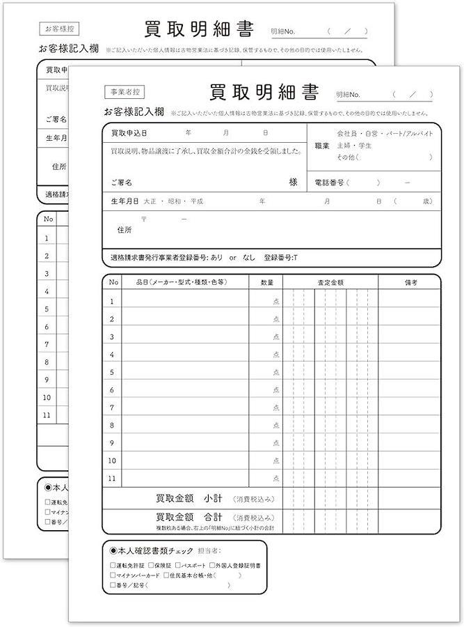 店頭買取用の伝票です。