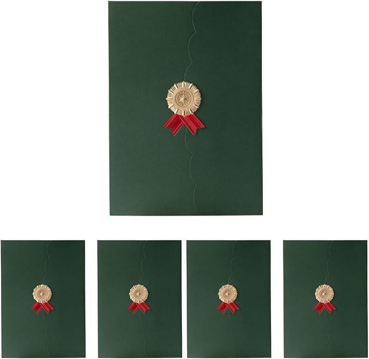 デザイン性: 金のエンブレムと赤いリボンが付いた高級感のある証書ファイル。
