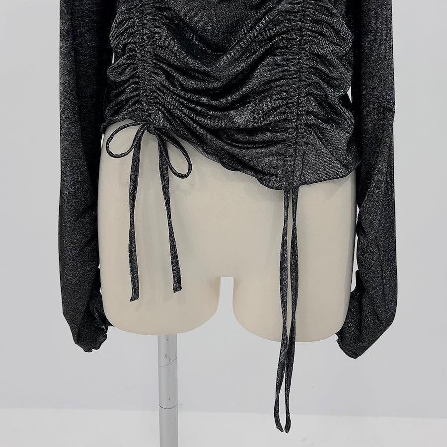 本体生地は細かいラメ入りの薄手カットソー素材です。さりげなくも華やかな印象を与えます。