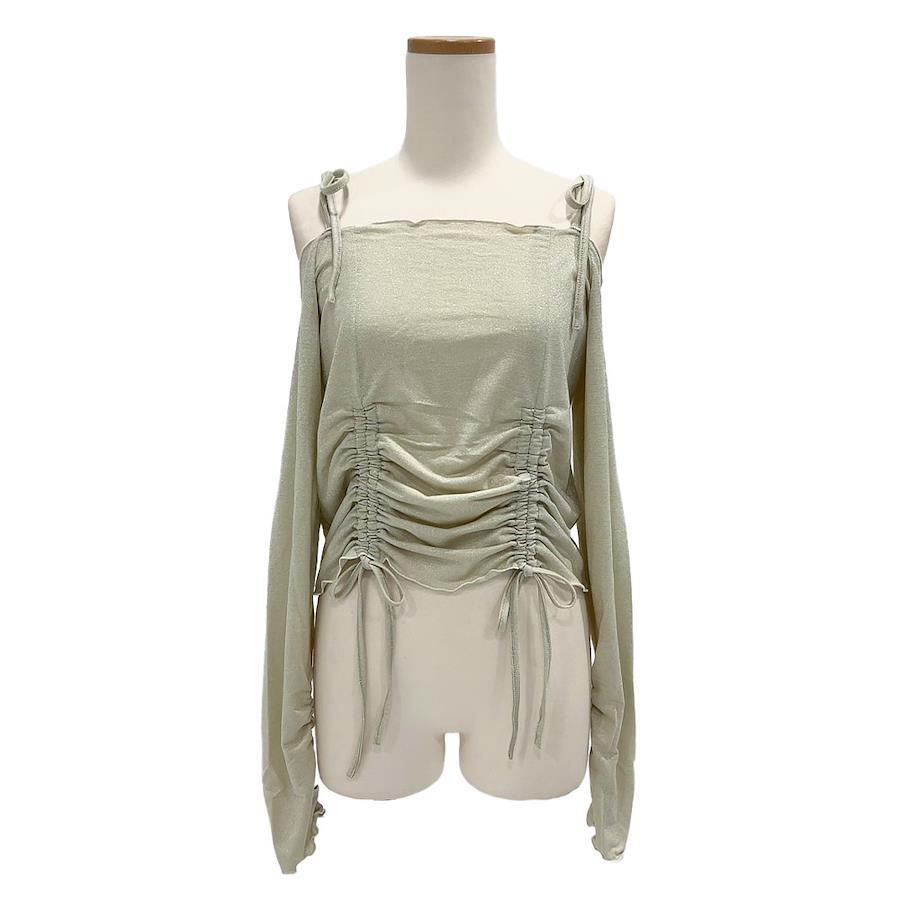 トレンド感たっぷりのドロストデザインが魅力的なオフショルカットソーのご紹介。