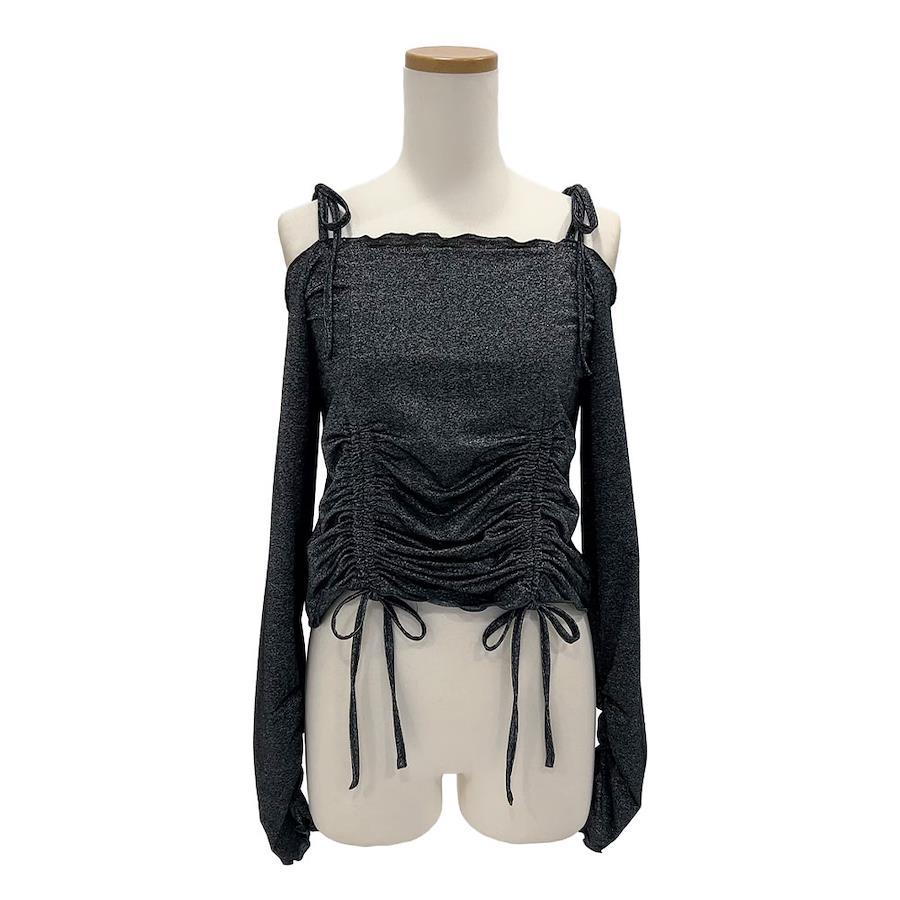 ドロストリボンや肩のリボンなど、リボンがたっぷりあしらわれた可愛いデザインのトップス。