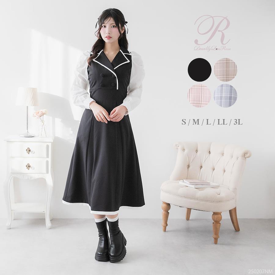 テーラードデザイン異素材ドッキングワンピースのご紹介。