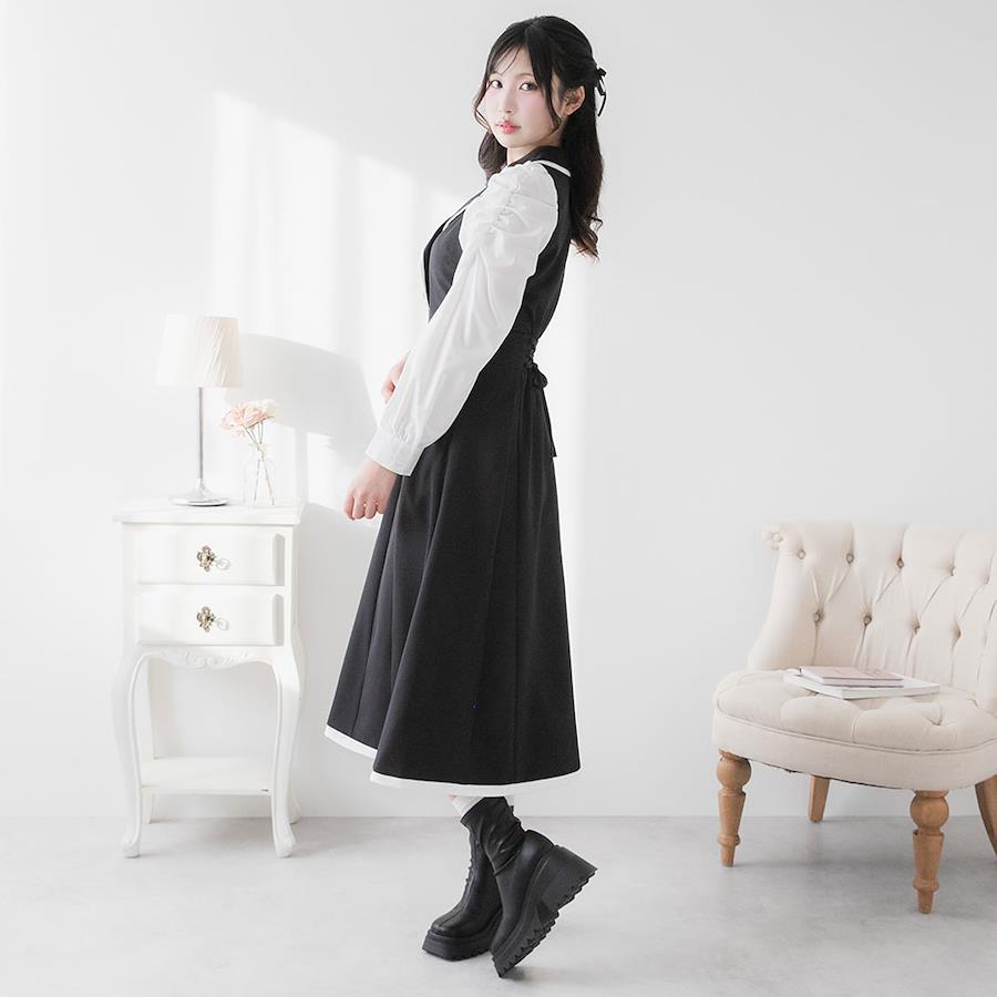 後ろウエストはレースアップ仕様になっており、お好みで絞り具合を調整していただけます。