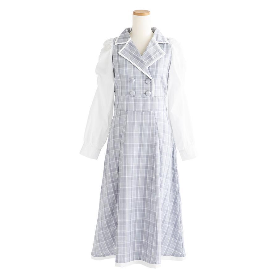 シャツ素材のお袖とテーラードデザインのワンピースを組み合わせたドッキングワンピース。