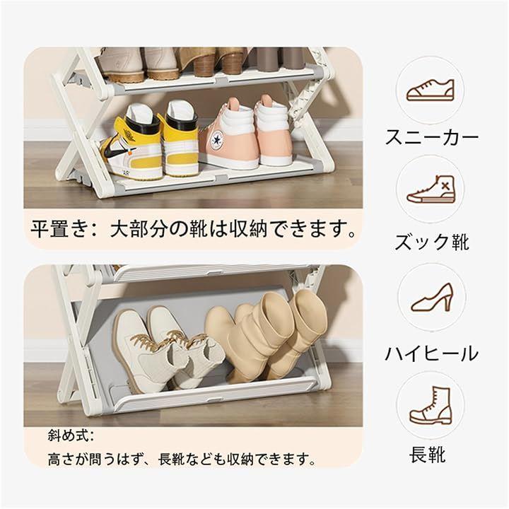 「収納する便利なデザイン」スニーカー、ズック靴、ハイヒール、長靴など、靴のタイプは問わず、簡単に収納できます。