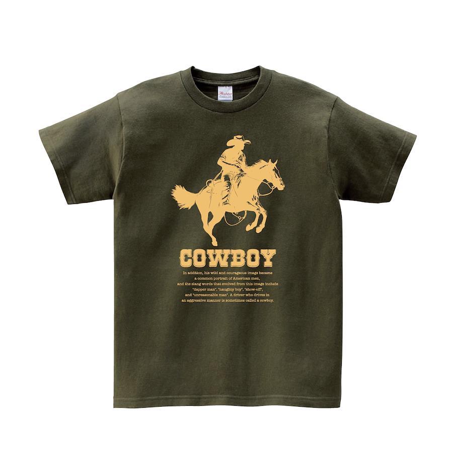 アメリカ西部開拓時代のカウボーイのTシャツです。 ※画像ははめ込み画像となり、実際とは多少異なりますので予めご了承ください。 ※サイズ表をよくご確認の上ご購入ください。 ※受注生産となるため、返品、交換はご遠慮ください。
