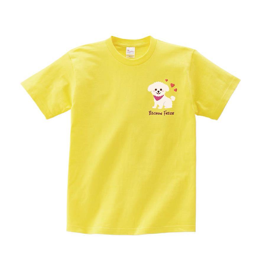 かわいいビションフリーゼのイラストデザインTシャツです。※画像ははめ込み画像となり、実際とは多少異なりますので予めご了承ください。 ※サイズ表をよくご確認の上ご購入ください。 ※受注生産となるため、返品、交換はご遠慮ください。