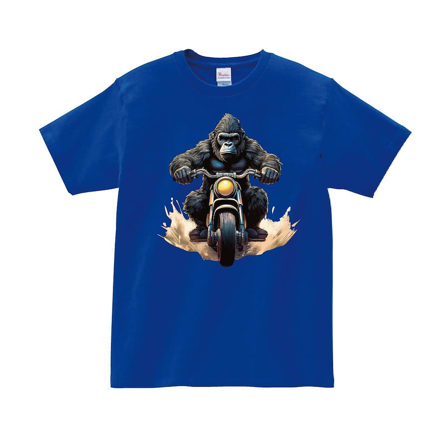 リアルなゴリラが颯爽とバイクに乗っているTシャツです。※画像ははめ込み画像となり、実際とは多少異なりますので予めご了承ください。 ※サイズ表をよくご確認の上ご購入ください。 ※受注生産となるため、返品、交換はご遠慮ください。