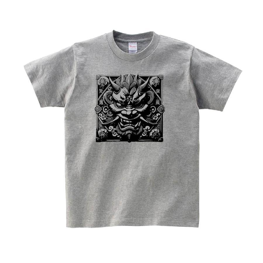 恐ろしい鬼瓦のイラストデザインTシャツです。※画像ははめ込み画像となり、実際とは多少異なりますので予めご了承ください。 ※サイズ表をよくご確認の上ご購入ください。 ※受注生産となるため、返品、交換はご遠慮ください。