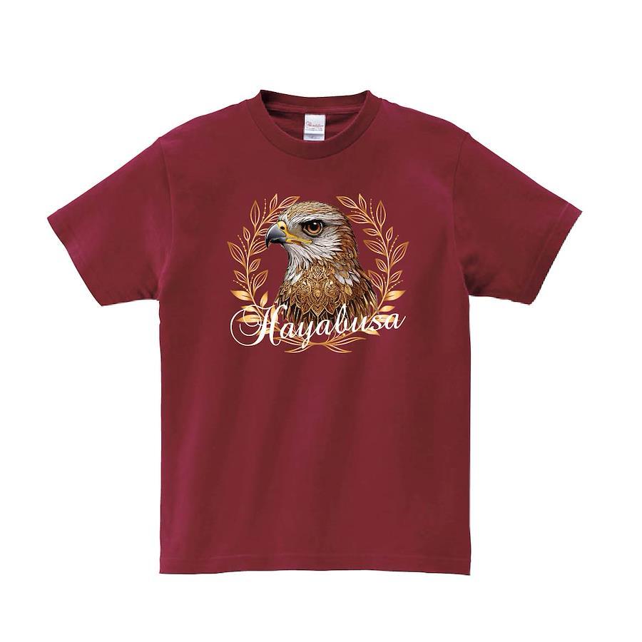 ハヤブサの紋章のエンブレムデザインTシャツです。※画像ははめ込み画像となり、実際とは多少異なりますので予めご了承ください。 ※サイズ表をよくご確認の上ご購入ください。 ※受注生産となるため、返品、交換はご遠慮ください。